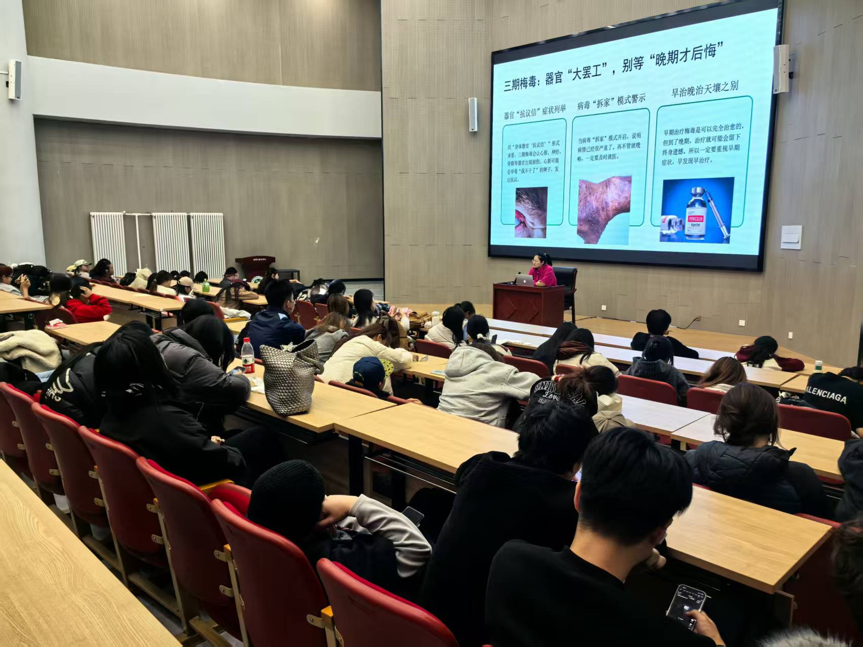 為進(jìn)一步鞏固校園健康防線,提升大學(xué)生自我保護(hù)意識(shí),內(nèi)蒙古自治區(qū)人民醫(yī)院群團(tuán)工作部團(tuán)委于近日在內(nèi)蒙古藝術(shù)學(xué)院云谷校區(qū)成功舉辦第二場(chǎng)"艾梅乙"防治專題講座。繼首場(chǎng)活動(dòng)獲得熱烈反響后,本場(chǎng)講座特邀我院婦科專家陳雙鳳副主任醫(yī)師再次開講,帶來更深入的健康知識(shí)分享。 講座通過真實(shí)案例,重點(diǎn)講解了艾滋病、梅毒和乙肝的預(yù)防措施、檢測(cè)途徑及日常防護(hù)要點(diǎn)?,F(xiàn)場(chǎng)氣氛熱烈,學(xué)生們普遍表示,通過該講座,對(duì)傳染病防治知識(shí)有了更全面、更深入的了解,自我保護(hù)意識(shí)和能力得到顯著提升。